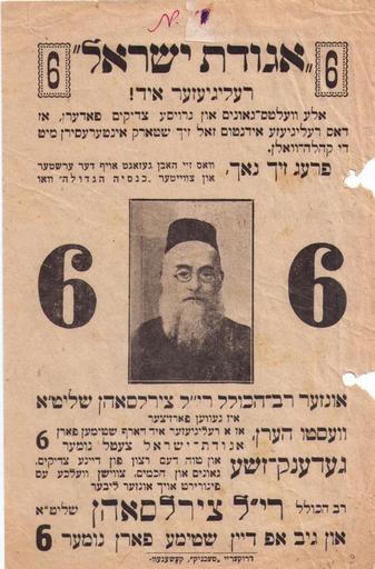 Keywords: Kishinev rabbi.jpg Campaign handbill for the Agudat Israel ticket led by Rabbi Yehuda Leib Tsirelson in a community election in the 1930s Photographed by User Sf2000 s 1930 Author Anonymous-EU Posters in Yiddish Historic Jewish communities People of Moldova People of Romania 1941 deaths Religion in Romania 1859 births History of Chișinău Rabbis from Romania Election posters in Romania |