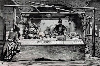 Keywords: Kitchen Bazaar by Eugène Flandin.jpg Cuisine de bazar Kitchen Bazaar Tehran آشپزخانه بازار 1840 Voyage en Perse avec Flandin éd Gide et Baudry 1851 Creator Eugène Flandin Assessments 1 PD-old-auto 1889 Eugène Flandin Uploaded with VicuñaUploader Bazzar of Tehran Kitchens in art Restaurants in art Drawings of Tehran Men at work in Iran Restaurants in Iran