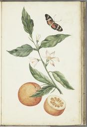 | Keywords: KITLV - 37A28 - Markée, Cornelis - Branch with blossoming orange blossom, oranges and butterfly - Brush drawing - Circa 1763.tif accession number 37A28 Markée Cornelis credit line Collection Markée Cornelis nl Tak bloeiende oranjebloesem sinasappels en vlinder en Branch with blossoming orange blossom oranges and butterfly 38 x 24 cm exhibition history Universiteitsbibliotheek Leiden Koninklijk Instituut voor Taal- Land- en Volkenkunde nl Penseeltekening en Brush drawing Keywords butterflies - fruits - Suriname object history origin object type PD-old-100-1923 KITLV donation place of creation place of discovery Pictures of the tropics a catalogue of drawings water-colours paintings and sculptures in the collection of the Royal Institute of Linguistics and Anthropology in Leiden / by J H Maronier - 's-Gravenhage Nijhoff 1967 - p 97 Een kopie naar/A copy after 'Metamorphosis Insectorum Surinamensium ofte verandering der Surinaamsche insecten waar in de Surinaamsche rupsen en wormen met alle des zelfs veranderingen na het leven afgebeeld en beschreven worden ' / door Maria Sybilla Merian - Amsterdam Valck 1705 - 2 60 p 61 pl - ill - Plaat LII http //media-kitlv nl/all-media/indeling/detail/form/advanced q_search_signatuur 37A28 Leiden University Library KITLV image 37A28 http //media-kitlv nl Homepage media-kitlv nl KITLV Uploaded with GWToolset KITLV_-_37A28_-_Markée _Cornelis_-_Branch_with_blossoming_orange_blossom _oranges_and_butterfly_-_Brush_drawing_-_Circa_1763 https //socrates leidenuniv nl/wikiMedia/37A28 tif Media contributed by KITLV Artwork by Cornelis Markée from KITLV Unidentified Lepidoptera illustrations Unidentified Citrus - botanical illustrations Lemons in art |