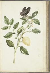 | Keywords: KITLV - 37A29 - Markée, Cornelis - Flowering branch of lemon tree, fruit and butterfly - Brush drawing - Circa 1763.tif accession number 37A29 Markée Cornelis credit line Collection Markée Cornelis nl Bloeiende tak van citroenplant citroen en vlinder en Flowering branch of lemon tree fruit and butterfly 38 x 24 cm exhibition history Universiteitsbibliotheek Leiden Koninklijk Instituut voor Taal- Land- en Volkenkunde nl Penseeltekening en Brush drawing Keywords butterflies - fruits - Suriname object history origin object type PD-old-100-1923 KITLV donation place of creation place of discovery Pictures of the tropics a catalogue of drawings water-colours paintings and sculptures in the collection of the Royal Institute of Linguistics and Anthropology in Leiden / by J H Maronier - 's-Gravenhage Nijhoff 1967 - p 97 Een kopie naar/A copy after 'Metamorphosis Insectorum Surinamensium ofte verandering der Surinaamsche insecten waar in de Surinaamsche rupsen en wormen met alle des zelfs veranderingen na het leven afgebeeld en beschreven worden ' / door Maria Sybilla Merian - Amsterdam Valck 1705 2 60 p 61 pl - ill - Plaat XVII http //media-kitlv nl/all-media/indeling/detail/form/advanced q_search_signatuur 37A29 Leiden University Library KITLV image 37A29 http //media-kitlv nl Homepage media-kitlv nl KITLV Uploaded with GWToolset KITLV_-_37A29_-_Markée _Cornelis_-_Flowering_branch_of_lemon_tree _fruit_and_butterfly_-_Brush_drawing_-_Circa_1763 https //socrates leidenuniv nl/wikiMedia/37A29 tif Media contributed by KITLV Artwork by Cornelis Markée from KITLV Unidentified Lepidoptera illustrations Unidentified Citrus - botanical illustrations |