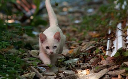 Keywords: kitten accommodating odd-eye cat eyes white cat yellow and blue eyes come meet the summer