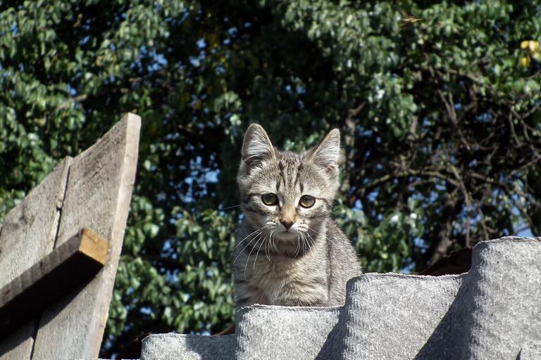 Keywords: kitten cat striped animals grey cats pet little fence