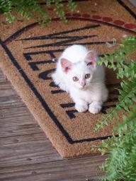 Keywords: kitty feline cat kitten pet funny mat white furry foliage cute adorable