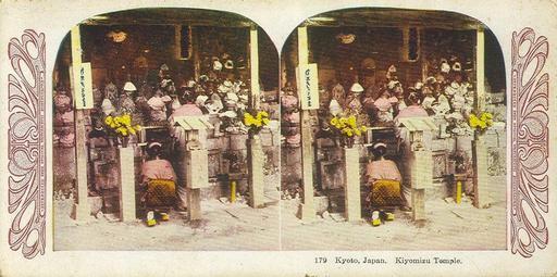 Keywords: KiyomizuKyotoStereo.jpg Kyoto Japan Kiyomizu Temple Stereoptical view card c 1900 No listing of date publisher nor any indication of claim of any copyright PD-old Stereo cards of Japan Kiyomizu-dera Japan in the 1900s