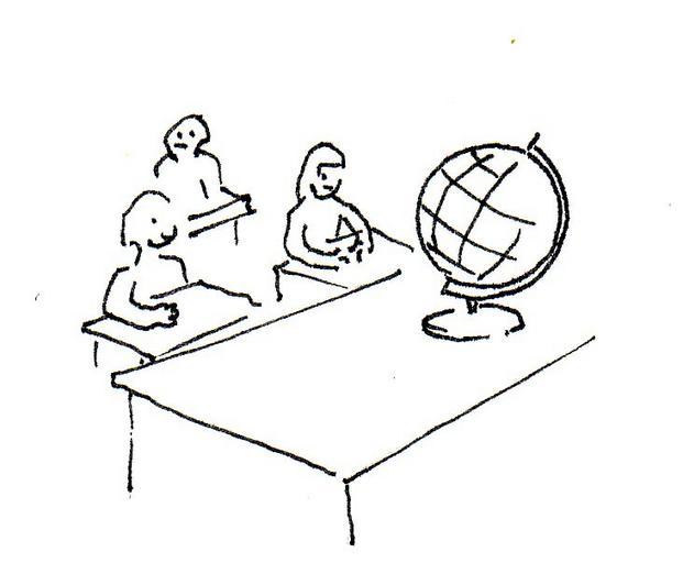 Keywords: Klassrum med jordglob.jpg Klassrum med jordglob Own 2008-11-30 Oshifima Look at the sky Titta på himlen Classrooms in art People with globes in art