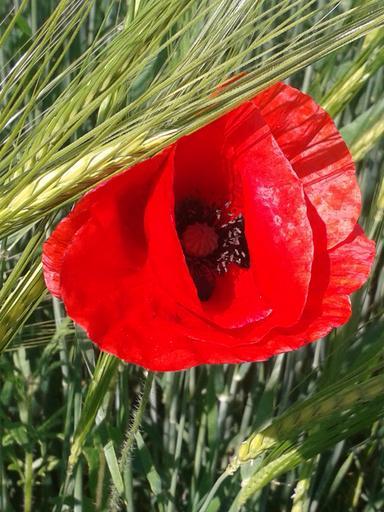 Keywords: klatschmohn red flower wheat field meadow cereals poppy blossom bloom poppy flower nature summer red poppy mohngewaechs close plant green grasses spring halme