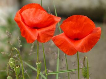 Keywords: klatschmohn red poppy flowers meadow blossom bloom close up nature bloom two