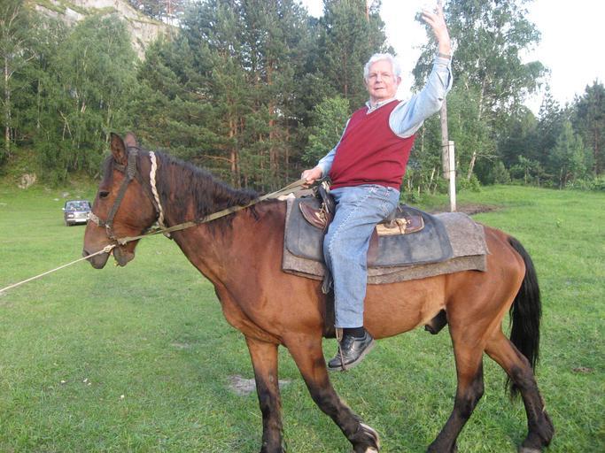 MAKE A MEME View Large Image Klaus Thiessen im Altai 2007.JPG Klaus Thiessen im Altai 2007 Own 2007-06-17 Brücke-Osteuropa Klaus Thiessen Altai horse People posing with horses Horse riding in Russia