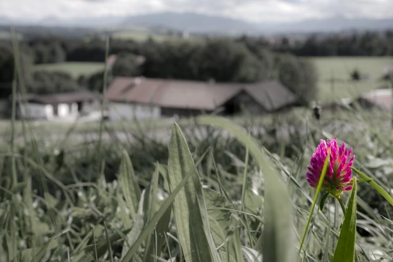 Keywords: klee pink red clover pointed flower wild flower fineness detail macro blossom bloom flower sky soft tender gentle fragile bloom farm alpine bavaria germany