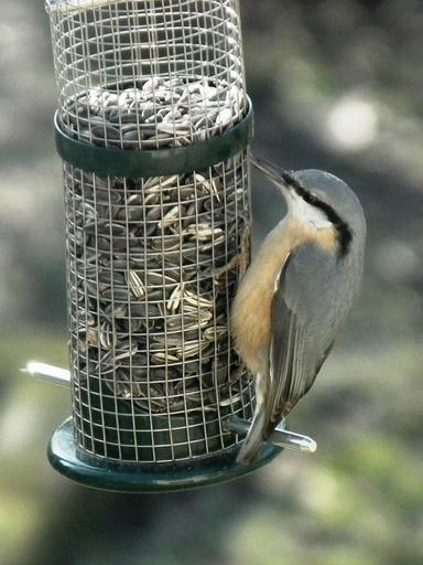 Keywords: kleiber bird food peck feather sunflower seeds red brown blue grey