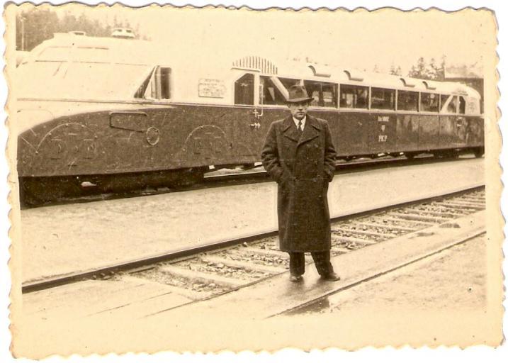 | Keywords: Klemens Stefan Sielecki 1935 Luxtorpeda Zakopane.PNG MSE Klemens Stefan Sielecki standing in front of the Luxtorpeda railcar that he and his team developed at Fablok at Zakopane station mgr inż Klemens Stefan Sielecki przed Luxtorpedą skonstruowaną przez jego zespół w Fabloku Stacja kolejowa Zakopane 1935 own family archive Stanislawow2 1935 PD-heirs Klemens Stefan Sielecki SAx of PKP Train station in Zakopane 1935 in Zakopane | ||||