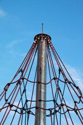 Keywords: klettergerüst children's playground playground metal iron strive technology play climbing tower climb game device great rope ropes climbing rope leisure high sky blue blue sky connection connections close up metal rod