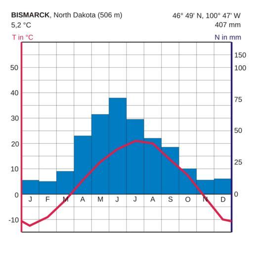 Keywords: Klimadiagr Bismarck.svg en Climate chart of Bismarck North Dakota de Klimadiagramm von Bismarck Norddakota own Gustavsson321 2010-08-15 Climate diagrams of the United States Climate diagrams Bismarck Climate
