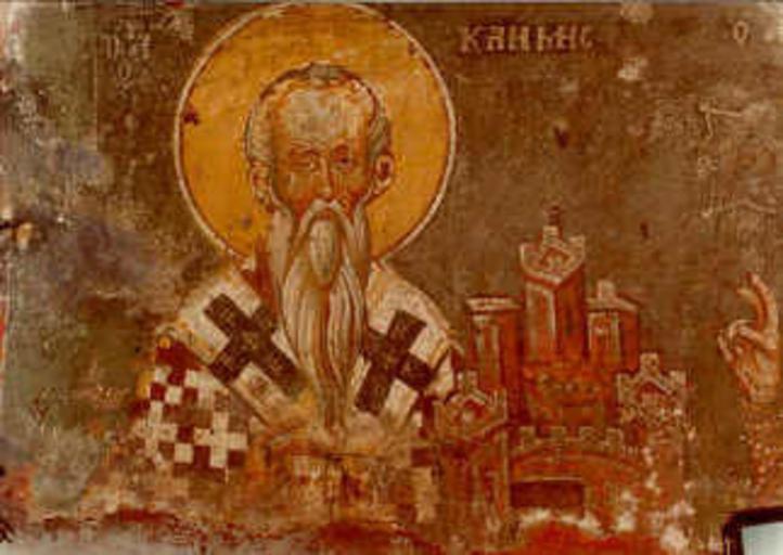 | Keywords: Kliment od Sv. Spas - Leskoec.jpg  mk Св Климент Ох идски со модел на г адот Ох ид во  ацете Ц квата Св Спас во Лескоец http //lh4 ggpht com/_X7_Km4oQadQ/SroNiIi1rmI/AAAAAAAAAEE/Nb6Taljoz08/Leskoec jpg author 1426 PD-Macedonia Church of the Ascension of Jesus Leskoec Frescos of Clement of Ohrid Frescos in the Republic of Macedonia |