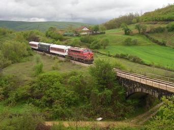 | Keywords: Klina river rail bridge.JPG NOHAB engine approaching a bridge over the Klina river east of Klinë Kosovo on a route from Fushë Kosovë 2014-04-25 11 27 14 own Jan Pešula cc-zero Uploaded with UploadWizard Rail transport infrastructure in Kosovo Klina Klina river HK 005-008 |