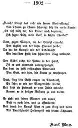 | Keywords: KM Loewe40.gif Der Löwe Sachsens nach einem Sonderdruck von 1902 ; erschien am 25 6 1902 im Rhein- und Mosel-Boten Reprint im Jahrbuch der Karl-May-Gesellschaft 1981 S 36 “40; online http //www karl-may-gesellschaft de/kmg/seklit/JbKMG/1981/36 htm 1902-06-25 Creator Karl May PD-old-100 <gallery> KM_Loewe36 gif KM_Loewe37 gif KM_Loewe38 gif KM_Loewe39 gif KM_Loewe40 gif </gallery> <gallery>KM_Am 23ten April_01 gif Fassung žAm 23ten April KM_Am 23ten April_02 gif möglicherweise von 1898 KM_Am 23ten April_03 gif anlässlich des 70 Geburtstages KM_Am 23ten April_04 gif König Alberts</gallery> Der Löwe Sachsens Karl May Rhein- und Mosel-Bote |