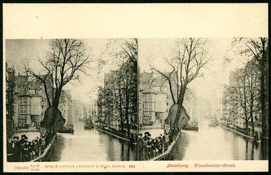 | Keywords: Knackstedt & Näther Stereoskopie 0801 Deutschland, Hamburg, Wandbereiter-Brook, Bildseite der Postkarte um 1900, DRGMs 83768 und 92395.jpg Stereoskopie der Firma Knackstedt Näther mit der fortlaufenden Nummer 801 hier mit einem Blick durch den Wandbereiter-Brook mit einem Schiff und zahlreichen interessierten Zuschauern Das auf Lichtdruck spezialisierte hamburger Unternehmen auch K N hatte für ihre stereographischen Ansichtskarten die DRGM-Nummern 83768 und 92395 eintragen lassen Diese Karte wurde dankenswerterweise von Ilse Paul zur Verfügung gestellt um sie als Digitalisat über Wikimedia Commons nachhaltig allen Menschen zur Verfügung zu stellen Scan vom Original Bernd Schwabe in Hannover mit Dank an Ilse Paul ~ 1900 unknown photographer; his work published by Knackstedt Näther <gallery> File Knackstedt Näther Stereoskopie 0801 Deutschland Hamburg Wandbereiter-Brook Adressseite der Postkarte ungeteilte Rückseite jpg Ungeteilte Rückseite der als Stereoskopie Nr 801 vertriebenen Postkarte Ansichtskarte </gallery> PD-old Documents by Ilse Paul Knackstedt Näther stereo cards Postcards of Hamburg Stereo cards of Hamburg Wandbereiter-Brook People of Hamburg Ships in Hamburg |
