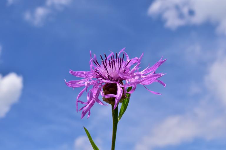 Keywords: knapweed centaurea jacea had knapweed pointed flower wild flower close natural plant flower blossom bloom purple sky clouds mood strong