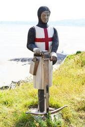 Keywords: knight st george figure sculpture cross-bow armour red and white st george colours mont orgueil castle sea