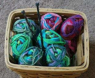 Keywords: knitting basket knitting yarn variegated wool blend thick and thin knitting needles colorful craft handicraft
