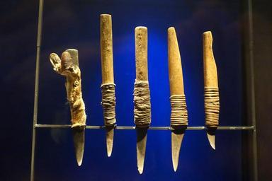 | Keywords: Knives, probably northwest North America - Etnografiska museet - Stockholm, Sweden - DSC01103.JPG en Exhibit in the Etnografiska museet Stockholm Sweden This work is old enough so that it is in the public domain Photography was permitted in the museum without restriction 2014-09-16 own Daderot other versions cc-zero North American collection in the Etnografiska museet Uploaded with UploadWizard | ||||