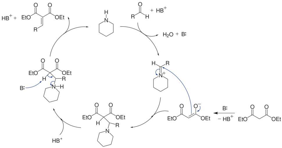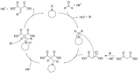 Keywords: Knoevenagel reaction mechanism 2.svg en Knoevenagel reaction mechanism 2 Own Choij 2009-09-11 Condensation reactions