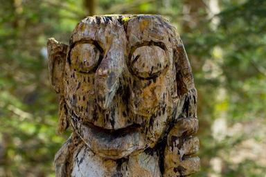 Keywords: kobold fig face look holzfigur carving forest wood carve wood carving art work profile portrait view nose eyes laugh smile trees