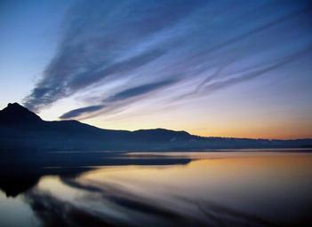 Keywords: kochelsee lake waters landscape mountains water clouds alpenblick horizon bavaria germany winter winter magic scenic panorama view