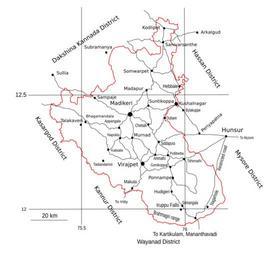 Keywords: Kodagu.svg Map of Kodagu district with major towns and roads own work based on http //www chengappa demon co uk/maps/text/kodagu html 2008-01 L Shyamal pd Maps of Kodagu district