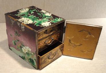 | Keywords: Kodansu Small Chest, late 19th century, Japan, porcelain enamel on silver, lacquer, and engraved silver - Art Institute of Chicago - DSC00247.JPG Exhibit in the Art Institute of Chicago Chicago Illinois USA This artwork is in the public domain because the artist died more than 70 years ago Photography was permitted in the museum without restriction Daderot 2012-10-10 16 32 46 Daderot cc0 cc0 Japanese art in the Art Institute of Chicago Collections of the Art Institute of Chicago Enamels of Japan Metalwork of the Meiji period |