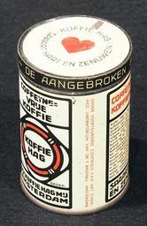 | Keywords: Koffie Hag bus, foto 2.JPG Very old packaging of a Dutch product that is not produced and not sold any more Photographed at a collector of Droste For info see http //www tincollectors nl/ tincollectors nl or email info tincollectors nl own 2014-04-11 09 23 51 Alf van Beem CC-Zero Trademarked Coffee tins |