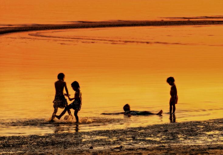 Keywords: koh samui children play beach island holiday thailand palm trees water sea asia southeast coast sand south sea sunset afterglow