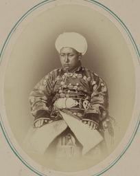 | Keywords: Kokand Khan and His Sons. Maadamin Beg, Second Son of the Kokand Khan WDL10717.png Artwork ru Кун Александ Людвигович 1840 1888 гг fr Kun Aleksandr L 1840-1888 en Kun Aleksandr L 1840-1888 zh 亚历山大·L· ,1840-1888 年 pt Kun Aleksandr L 1840-1888 ar كُن، ألكسندر ل ، 1840-1888 es Kun Aleksandr L 1840-1888 ru Коканский хан и его сыновья адамин-бек вто ой сын кокандского хана fr Khan de Kokand et ses fils Maadamin Beg second fils du khan de Kokand en Kokand Khan and His Sons Maadamin Beg Second Son of the Kokand Khan zh 浩罕汗及其众子 马阿达明伯克,浩罕汗次子 pt Khan de Kokand e seus filhos Maadamin Beg segundo filho do khan de Kokand ar خان كوكند وأبناؤه معاد أمين بك، ثاني أبناء خان كوكند ru Эта фотог афия входит в этног афическую часть Ту кестанского альбома всесто оннего исследования Цент альной Азии п едп инятого после того как в 1860-х годах в егионе установилось господство Российской импе ии Альбом созданный по аспо яжению гене ала Константина Пет овича фон Кауфмана 1818-1882 гг пе вого гене ал-губе нато а оссийского Ту кестана состоит из четы ех частей в шести томах Часть а хеологическая два тома Часть этног афическая два тома Часть п омысловая один том и Часть исто ическая один том Основным составителем альбома был усский востоковед Александ Людвигович Кун аботавший совместно с иколаем Венедиктовичем Богаевским В альбоме п едставлено около 1200 фотог афий а также а хитекту ные планы аква ельные исунки и ка ты Часть этног афическая включает 491 отдельную фотог афию на 163 листах а фотог афиях изоб ажены п едставители азличных на одов егиона листы 1-33 повседневная жизнь и итуалы листы 34-91 а также виды де евень и го одов уличные то говцы и комме ческая деятельность листы 92-163 <br>Одежда и платье; Этног афические фотог афии; Госуда ственные чиновники; Головные убо ы; ужчины; Фотог афические исследования; По т етные фотог афии; По т еты; Тю баны; Тю кские на оды fr Cette photographie est extraite de la partie ethnographique de l'<em>Album du Turkestan</em> étude visuelle complète de l'Asie centrale entreprise après que l'Empire russe prit le contrôle de la région dans les années 1860 Commandé par le général Konstantin Petrovich von Kaufman 1818 1882 premier gouverneur général du Turkestan russe l'album est composé de six volumes répartis en quatre parties la partie archéologique deux volumes la partie ethnologique deux volumes la partie sur les métiers un volume et la partie historique un volume L'album fut essentiellement compilé par l'orientaliste russe Aleksandr L Kun assisté de Nikolai V Bogaevskii Il comporte près de 1 200 photographies et inclut également des plans architecturaux des dessins à l'aquarelle et des cartes La partie ethnographique compte 491 photographies sur 163 planches montrant des individus des différentes peuplades de la région planches 1 à 33 des scènes de la vie quotidienne et des rites planches 34 à 91 ainsi que des vues de villages et de villes de vendeurs ambulants et d'activités commerciales planches 92 à 163 <br>Vêtements et habits; Photographies ethnographiques; Hauts fonctionnaires; Coiffures; Hommes; Inventaires photographiques; Portraits photographiques; Portraits; Turbans; Peuples turciques en This photograph is from the ethnographical part of <em>Turkestan Album</em><em> </em>a comprehensive visual survey of Central Asia undertaken after imperial Russia assumed control of the region in the 1860s Commissioned by General Konstantin Petrovich von Kaufman 1818 82 the first governor-general of Russian Turkestan the album is in four parts spanning six volumes Archaeological Part two volumes ; Ethnographic Part two volumes ; Trades Part one volume ; and Historical Part one volume The principal compiler was Russian Orientalist Aleksandr L Kun who was assisted by Nikolai V Bogaevskii The album contains some 1 200 photographs along with architectural plans watercolor drawings and maps The Ethnographic Part includes 491 individual photographs on 163 plates The photographs show individuals representing the different peoples of the region Plates 1 33 ; daily life and rituals Plates 34 91 ; and views of villages and cities street vendors and commercial activities Plates 92 163 <br>Clothing and dress; Ethnographic photographs; Government officials; Headgear; Men; Photographic surveys; Portrait photographs; Portraits; Turbans; Turkic peoples zh 这张照片出自<em> 其斯 相册 </em><em></em>的民族部分,该相册是俄罗斯 国 19 世纪 60 年代取得中亚控制 后, 手制 的 部针对该 区的综合 图像调查记录 相册由俄罗斯驻 其斯 (俄罗斯 国中亚属 的名称)首任 康斯 丁·彼得罗维奇·凡· 夫曼(Konstantin Petrovich von Kaufman,1818 82 年)将军赞助完成,共分六卷,四个部分: 古部分 (两卷); 民族部分 (两卷); 贸易部分 ( 卷)和 历史部分 ( 卷) 相册的主要编