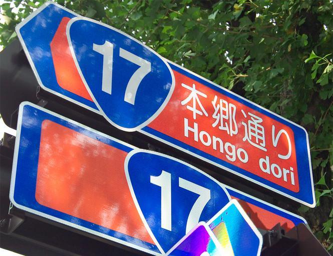 | Keywords: Kokudo17GoHongoDori.jpg Road sign for National Route 17 Japan Hongo Dori Bunkyo Tokyo Japan 2005-10-10 own Fg2 Bunkyo Tokyo Route 17 Japan Japan national highway shields Road signs in Japan Street signs in Japan Road junction signs in Japan |
