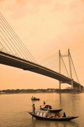 Keywords: kolkata suspension bridge bridge fishing boats india