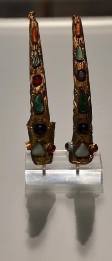 | Keywords: Köln Museum für Ostasiatische Kunst 03012015 Nail Protector 2.jpg en Pair of finger nail protectors front view ; brass sheet hammered inlaid semi precious stones China Qing Dynasty 1900-1910 Museum für Ostasiatische Kunst in Cologne gift by Helga Fisher 2015-01-03 13 18 44 own Vassil other versions cc-zero Museum für Ostasiatische Kunst Köln Nails Metalwork of the Qing Dynasty Uploaded with UploadWizard Brass jewellery | ||||