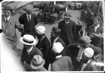 | Keywords: blackandwhite monochrome black and white DESCRIPTION: Komagata Maru incident VPL Accession Number: 122 Date: 1914 Photographer/Studio: Canadian Photo Company SUBJECTS: East Indians, Sikhs, Emigration and immigration, Ships Location: British Columbia - Vancouver Harbour More information on our historical photograph collection: www.vpl.ca/historicalphotos DESCRIPTION: Komagata Maru incident VPL Accession Number: 122 Date: 1914 Photographer/Studio: Canadian Photo Company SUBJECTS: East Indians, Sikhs, Emigration and immigration, Ships Location: British Columbia - Vancouver Harbour More information on our historical photograph collection: www.vpl.ca/historicalphotos |