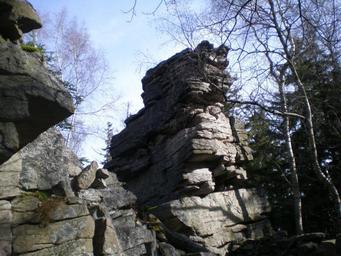 Keywords: Komín na Koníčku 4.JPG cs Skalní útvar Komín na Koníčku 667 m na Jineckých Hřebenech own Brdy-res publica 2008-06-24 public domain Rocks in Central Bohemian Region Jinecké Hřebeny