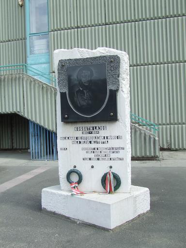 | Keywords: Komló Kossuth.JPG Kossuth Lajos halálának századik évfordulóján állított emlékmű Komlón own photo 2008; monument 1994 own photo; sculptor Cc-zero Komló Sculptures in Baranya County Portraits of Lajos Kossuth Monuments and memorials in Baranya County Plaques to Lajos Kossuth |