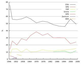 | Keywords: Kommunalwahl Overath.svg Results of local elections in Overath Germany from 1948 ---- Kommunalwahlergebnisse Overath ab 1948 Quellen Paul Schmitz Gemeinde Overath Hrsg Overath Bildband einer Gemeinde Meinerzhagener Druck- und Vereinshaus Overath 1979 S 392 ff http //www cdu-overath de/pdf/2200 pdf 60 Jahre CDU der CDU Overath http //www wahlen lds nrw de/kommunalwahlen/1999/einzelergebnisse/buergermeister_kreisang_gem/c378024kw00 html Kommunalwahlergebnisse 1999 http //www wahlen lds nrw de/kommunalwahlen/2004/kreisang_Gem/raeteGem/c378024kw0400 html 2004 und http //www wahlergebnisse nrw de/kommunalwahlen/2009/Gem_bm/d378024kw0900 html 2009 von www wahlen lds nrw de own 2007-04-19 Peter Schlömer Dapete Dapete Created with gnuplot using the following commands and manually changing colors of the lines in Inkscape <pre> set terminal svg enhanced fname Bitstream Vera Sans set output 'Kommunalwahl Overath svg' set xdata time set timefmt x d m Y set format x Y set xrange noreverse nowriteback set xtics nomirror set yrange 0 noreverse nowriteback set ytics nomirror set ylabel set grid ytics set border 3 plot 'wahl dat' using 1 2 title CDU with lines 'wahl dat' using 1 3 title SPD with lines 'wahl dat' using 1 4 title FDP with lines 'wahl dat' using 1 5 title Grüne with lines 'wahl dat' using 1 6 title KPD with lines 'wahl dat' using 1 7 title Zentrum with lines 'wahl dat' using 1 8 title BHE with lines 'wahl dat' using 1 9 title BfO with lines quit </pre> wahl dat <pre> Date CDU SPD FDP Grüne KPD Zentrum BHE Bfo 15 09 1946 75 86 13 60 5 94 4 61 17 10 1948 55 83 25 39 14 13 3 88 0 77 19 11 1952 55 35 20 08 14 61 0 99 2 24 6 73 28 10 1956 56 38 28 81 9 87 4 93 19 03 1961 59 26 26 57 14 17 27 09 1964 56 72 33 27 10 01 19 11 1969 51 02 38 49 10 49 04 05 1975 53 29 33 37 13 34 30 09 1979 52 22 35 82 11 96 30 09 1984 48 36 29 89 11 53 10 23 01 10 1989 46 42 30 12 12 69 10 77 01 10 1994 45 83 29 96 12 85 11 36 12 09 1999 56 41 21 59 13 44 8 56 26 09 2004 49 08 24 12 15 09 11 71 30 08 2009 40 60 20 30 19 30 15 10 3 50 </pre> Overath Files by User Dapete Images with Gnuplot source code |