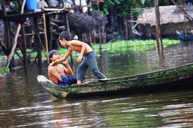 Keywords: kompong phluk kompong tour village floating siem reap cambodia tonle sap lake lake water boat local woman fishing stilted travel wooden tropical asia traditional playing children boys boy