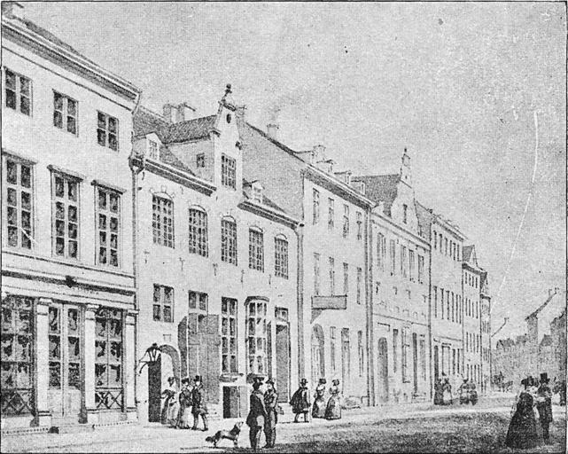 Keywords: Kong Salomons Apotek og Efterslægten 1840.jpg da Kong Salomons Apotek og Efterslægtens skole på Østergade 1840 Scan from the book Det gamle København vol 2 by Knud Bokkenheuser 1869-1936 Saddhiyama 1919 Expired copyright PD-old History of Copenhagen Østergade København Demolished buildings in Copenhagen |