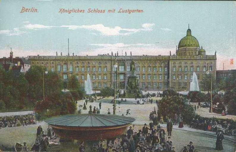 Keywords: Köngl. Schloss mit Lustgarten.jpg Königl Schloss vom Lustgarten aus gesehen alte Postkarte ca 1910 Sendker PD-old Stadtschloss Berlin in the 1910s Postcards of the Stadtschloss Berlin Granite bowl Lustgarten Berlin