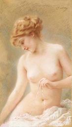 | Keywords: Konstantin Makovsky - Sitting Nude.jpg  Artwork Creator Konstantin Makovsky Pastel Paper Canvas Size cm 51 89 europe private collection object history Sale Dorotheum Vienna ; October 23 2014 Lot Nr 1254; 112 500 ‚¬ exhibition history credit line place of creation C Makowsky upper right signature http //www liveinternet ru/users/pkfnf/post337905227/ liveinternet ru http //i072 radikal ru/1409/41/47b189522deb jpg direct link https //www dorotheum com/auktionen/aktuelle-auktionen/kataloge/list-lots-detail/kuenstler/constantin-jegorowitsch-mako-wsky/auktion/10844-gemalde-des-19-jahrhunderts/lotID/1254/lot/1772610-constantin-jegorowitsch-makowsky html dorotheum com https //www dorotheum com/38N141023_138_54389_1/Bild/Constantin-Jegorowitsch-Makowsky jpg direct link accession number PD-old-auto-1923 1915 Nude sitting women in art Nude or partially nude women facing left and looking down in art Portrait paintings of women with blond hair Nude or partially nude women with yellow background Konstantin Makovsky Images from Dorotheum Taken with Phase One IQ260 |