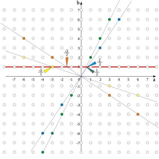Keywords: Konstrukcja liczb wymiernych.svg Construction of rational numbers as equivalence classes of pairs of integers Own 2007-03-25 pl Wikipedysta Olaf PD Rational numbers Construction of rational numbers