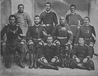 | Keywords: Konvoy 1895.jpg en Participants in Roborovski's expedition From left to right; First line sitting Youngest Unter-officer Pavel Zamuraev Roborovski's dog zabaikalskiy сossack Buyantuev; Second line Boinov zabaikalskiy сossack Nikolai Shestakov Semirechenskiy сossack Gavrila Ivanov grenadier Semyon Zharkoy zabaikalskiy сossack ; Third Line Ilya Kurilovich Zinoviy Smirnov grenadier Efim Voroshilov ru Участники экспедиции Робо овского Слева нап аво Пе вый яд сидят Павел Заму аев младший унте -офице 4 Ту кестанского ст елкового батальона собака Робо овского Буянтуев младший у ядник Забайкальского казачьего войска ЗКВ Вто ой яд сидят Боинов ста ший у ядник ЗКВ иколай Шестаков ста ший у ядник Семи еченского казачьего войска СКВ Гав ила Иванов унте -офице 2-го г енадё ского Ростовского полка Семён Жа кой ста ший у ядник ЗКВ ; Т етий яд стоят Илья Ку илович вольнонаёмный Зиновий Сми нов ста ший унте -офице 7-го г енадё ского Самогитского полка Ефим Во ошилов ста ший унте -офице 4 Ту кестанского ст елкового батальона 1896 http //albert-motsar livejournal com/203948 html Razvedchik magazine 1896 uknown photographer Custom license marker 2014 07 21 PD-old-100 PD-anon-1923 PD-RusEmpire Uploaded with UploadWizard Explorers from Russia Roborovski Vsevolod |