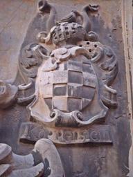 | Keywords: Koppenstein Wappen 1b.JPG de Wappen derer von Koppenstein Ahnenwappen am Epitaph des Domdekans Hermann Lothar von Auwach + 1722 Speyerer Dom Südseite außen Oben rechts im Wappen das Nest einer Mörtelbiene 2013-10-29 own Altera levatur Coats of arms of Koppenstein family Speyer Cathedral Megachile parietina Cc-zero |