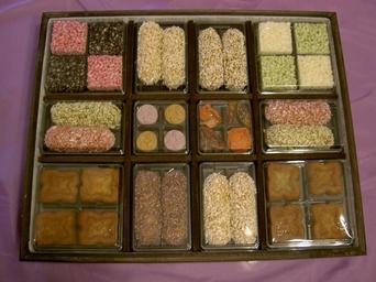| Keywords: Korean hangwa.jpg Korean traditional cookies personal picture 2006-10-04 stegano public domain Hangwa Decorated food Plastic food containers Square food Round food Sticks food Flower-shaped food Food packaging Boxes Colorful food Seed brittle bars |