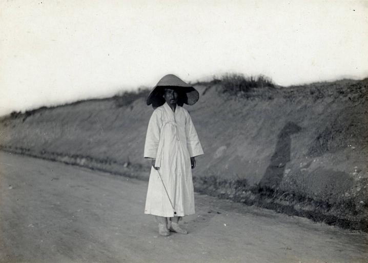 | Keywords: Korean mourner, Korea, (s.d.) (Taylor box21num25).jpg en <br> Korean mourner Korea s d This is the Korean mourning hat When a man's father or mother dies it is believed that the death was due to some great wrong that the man has done This large hat is worn so that heaven will not have to look upon his guilty face This hat and sackcloth is worn by the man for a full year This man is carrying a pipe in his right hand Date created 1908/1922 Publisher of the Digital Version University of Southern California Libraries Repository Name Methodist Church U S Legacy Record ID kda-m92 Photographer Methodist Episcopal Church Format photograph Archival file kda_Volume42/Taylor_box21num25 jpg Rights Neither the General Conference nor any General Agency of The United Methodist Church successor to the Methodist Episcopal Church claims any interest in the photos or images Filename Taylor_box21num25 Coverage date 1908/1922 Contributing entity University of Southern California Repository Address Nashville Tennessee Part of collection Korean Digital Archive Donor Taylor Ewing Bevard Type images Part of subcollection The Reverend Corwin Nellie Taylor Collection Geographic Subject Country Korea Compiler Taylor Corwin; Blood-Taylor Nellie 1908/1922 Methodist Episcopal Church http //digitallibrary usc edu/cdm/ref/collection/p15799coll48/id/724 PD-Japan-oldphoto Korean archive in the USC digital library Images from USC Digital Library uploaded by Fæ |