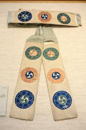 | Keywords: Koshiobi Sash, Edo period, 18th century, tomoe (comma shapes) design on white ground - Tokyo National Museum - DSC06145.JPG en Exhibit in the Tokyo National Museum Tokyo Japan This artwork is old enough so that it is in the public domain 2013-09-03 00 49 18 own Daderot cc-zero Nō costumes in the Tokyo National Museum Uploaded with UploadWizard | ||||